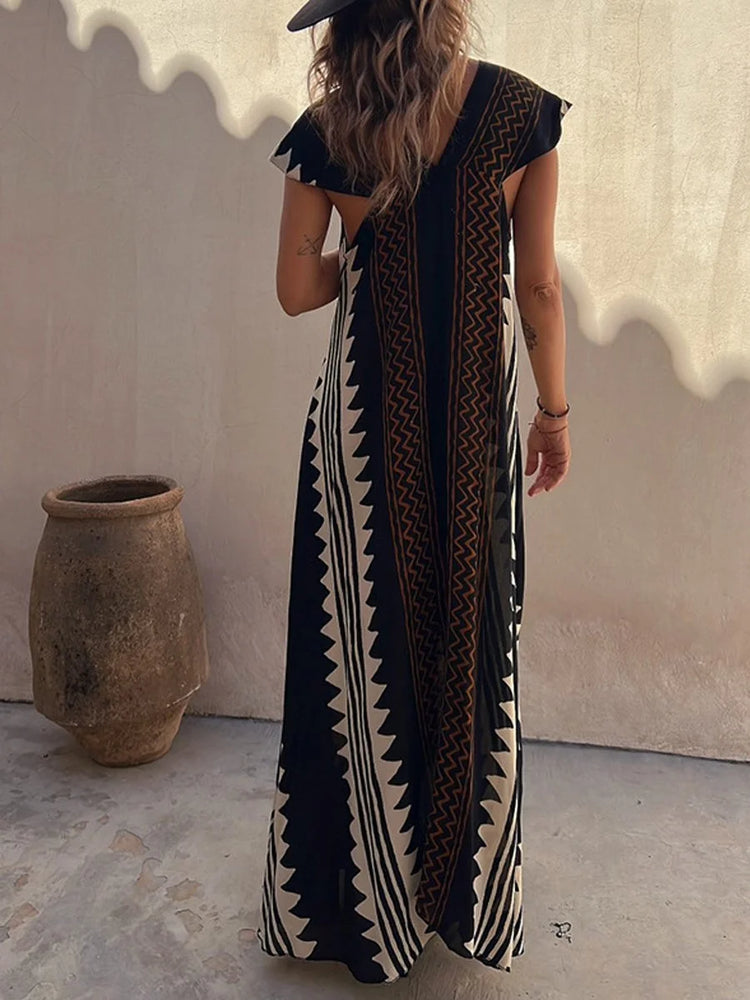 Vestido Boho Chic con Escote en V Profundo – Elegancia que Fluye con Cada Paso